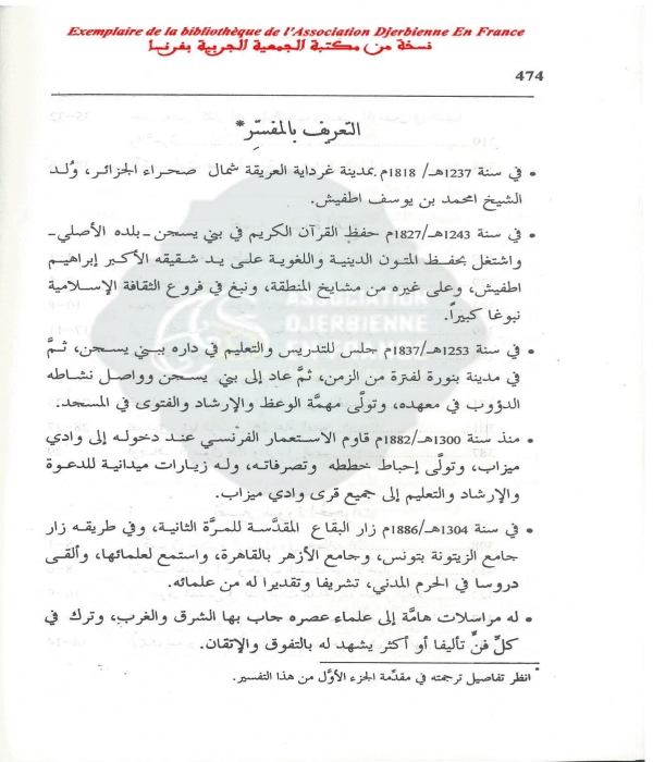 امحمد بن يوسف بن عيسى بن صالح بن عبد الرحمن بن عيسى بن إسماعيل بن محمَّد بن عبد العزيز بن بكير الحفصي، اطفيَّش. شهرته: قطب الأئمة. وهو أشهر عالم إباضي بالمعرب الإسلامي في العصر الحديث.